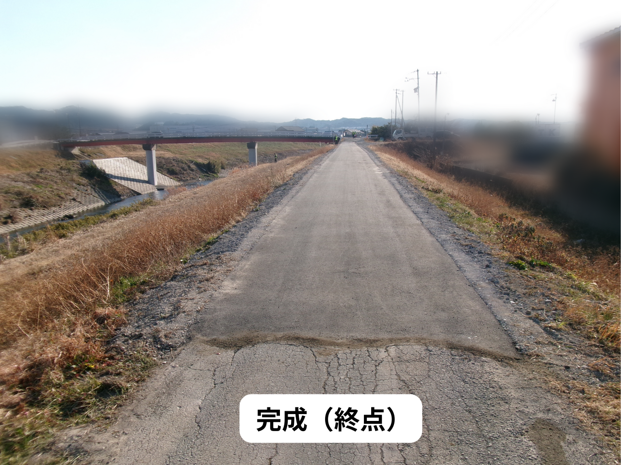 令和4年度 地域協働環境整備事業 市道吉詰右岸通り線舗装補修工事 2023.02.10 舗装工事 工事内容 舗装補修工事 工期 令和4年12月8日~令和5年2月28日 工事場所 掛川市 領家 地内 発注者 掛川市