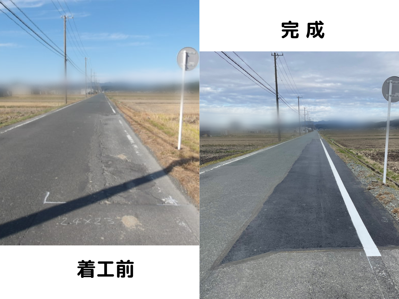 令和4年度 地域協働環境整備事業 市道本郷吉岡縦幹線舗装補修工事 2023.02.15 舗装工事 工事内容 舗装補修工事 工期 令和5年2月3日~令和5年2月20日 工事場所 掛川市 吉岡 地内 発注者 掛川市
