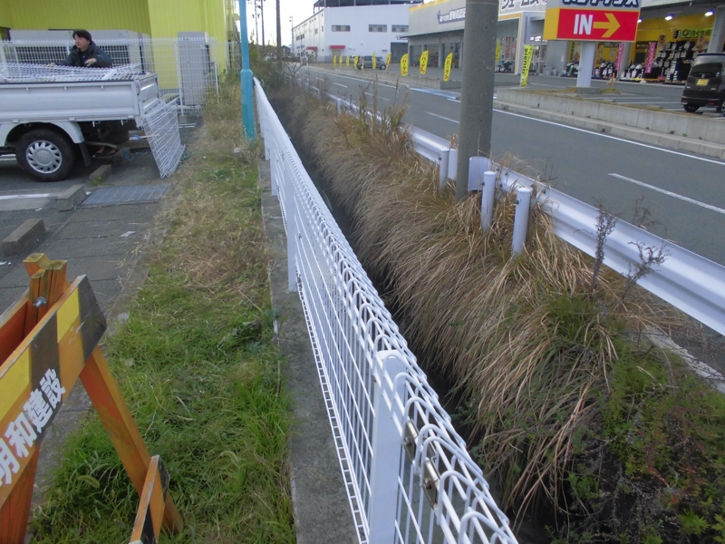 アスファルト合材を材料にした縁石のようなものです。坂路などの端に設置されていることが多く 路肩に集まった雨水を排水路等に導くために設置します